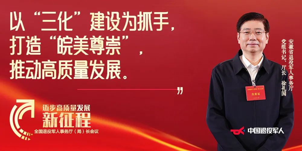 聚力退役军人工作高质量发展目标任务,以规范化、标准化、信息化“三化”建设为载体,在全省系统树立大抓基层导向,聚力打造“皖美尊崇”品牌,实现服务保障从有到优,推动安徽退役军人工作高质量发展。
