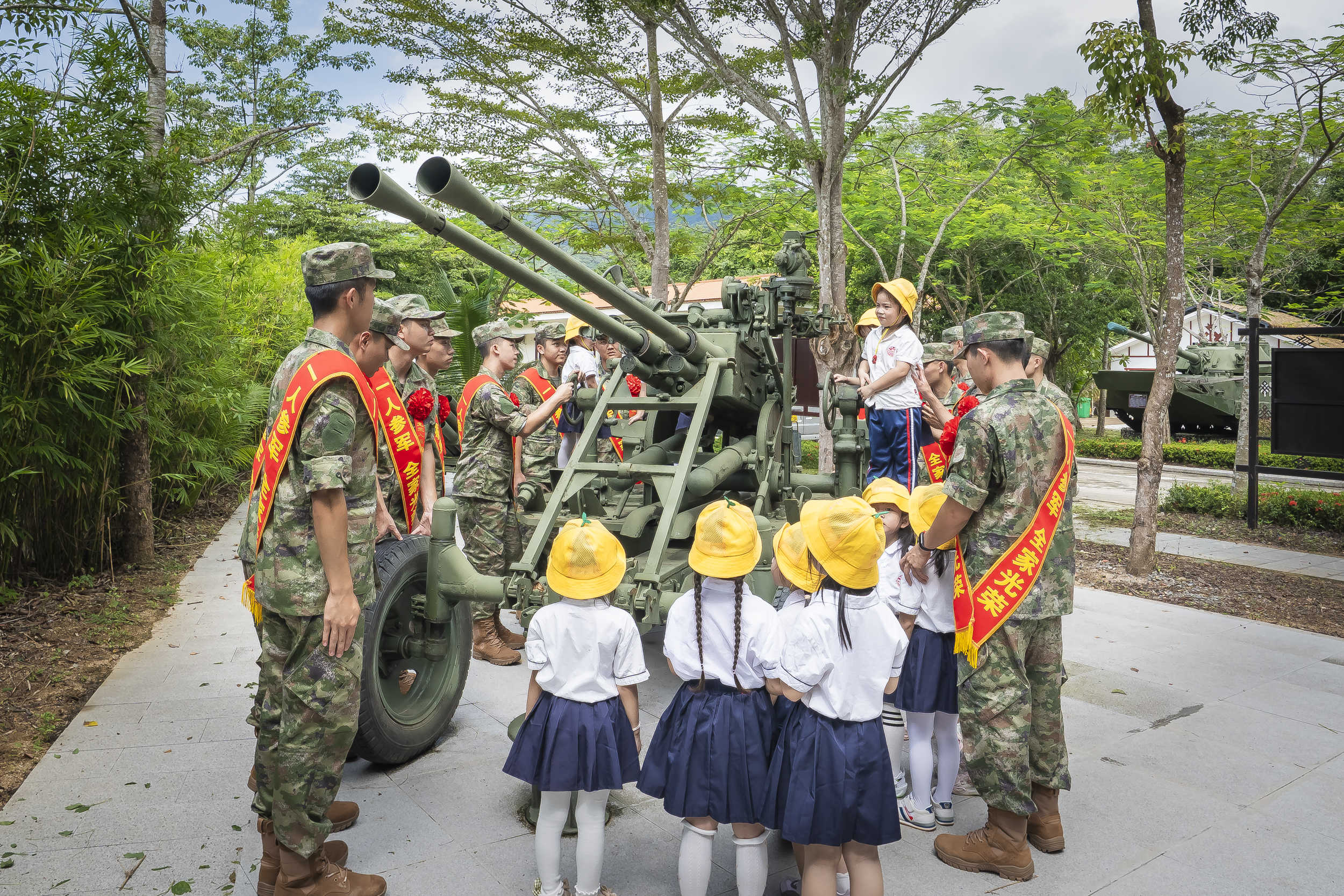 五指山市即将入伍新兵与小朋友一起接受国防教育