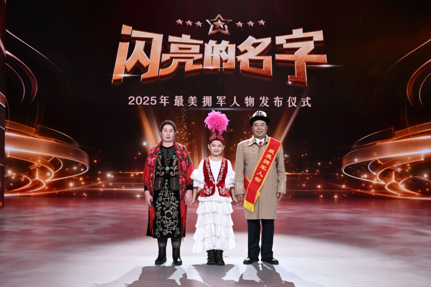 吐尔地·吾斯曼一家三口在2025年“最美拥军人物”发布仪式现场