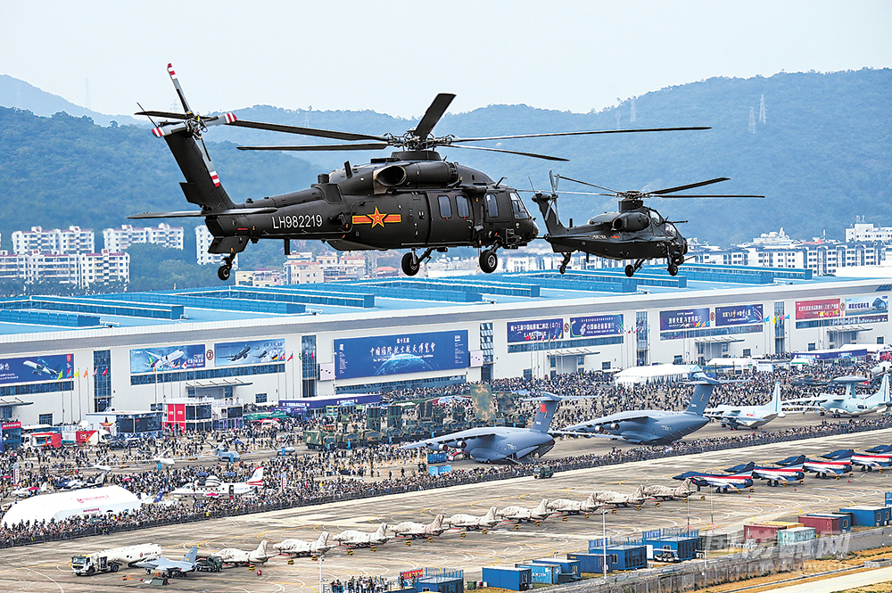 ②11月13日,陆军直升机在第十五届中国航展上进行飞行表演。解放军报特约记者 张永进摄