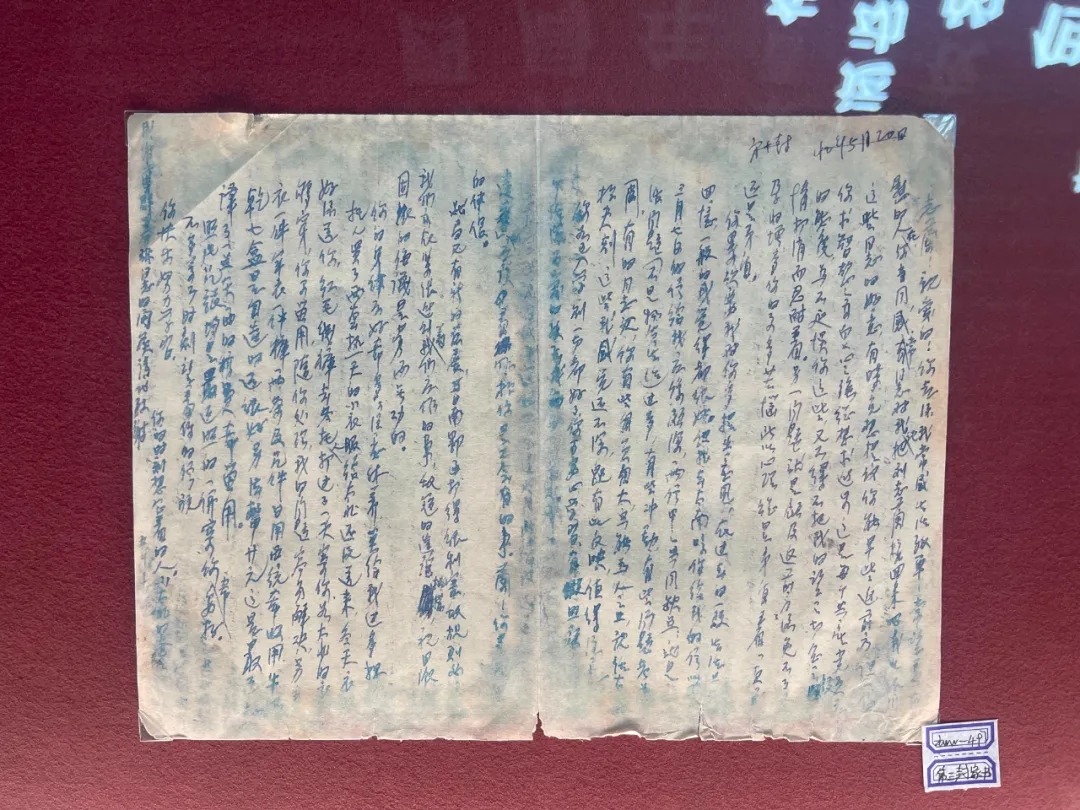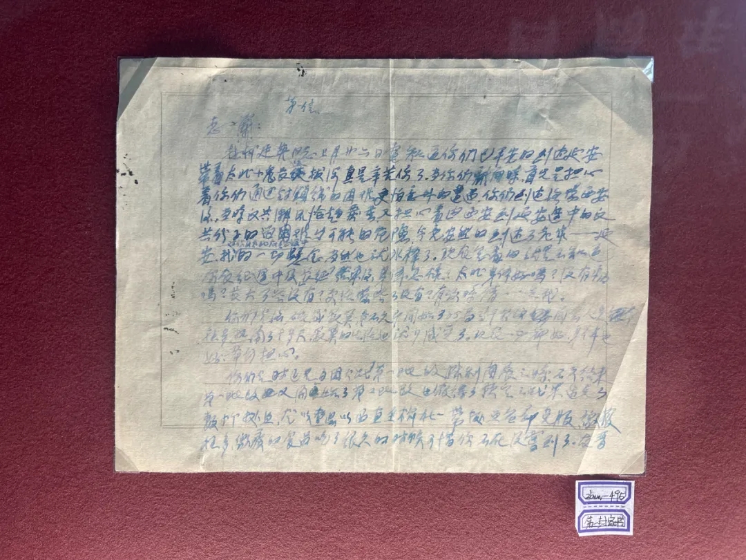 展出的左权将军部分家书。(新华网 于杨 摄)