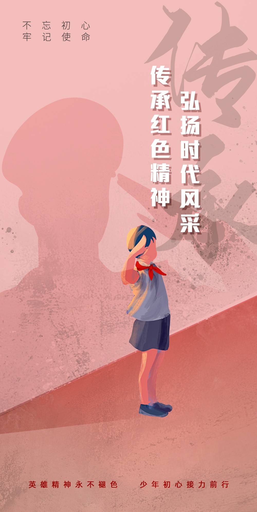 作品通过极简的构图和象征性元素,传递出“英雄精神永不褪色,少年初心接力前行”的深刻寓意。它不仅是对军人奉献的致敬,更是对新一代的期许——在时代变迁中,守护信仰,让精神之火生生不息。