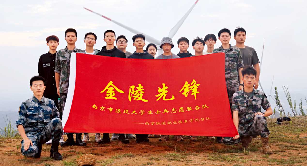2021年,“金陵先锋”南京市退役大学生士兵志愿服务队成立,南京市退役军人事务部门统筹,在宁高校深度参与,构建起“政校协同、资源共享、优势互补”的志愿服务新格局。目前,已有南京中医药大学、南京林业大学、金陵科技学院、南京铁道职业技术学院等多个院校的多支分队,在思想政治引领、红色宣讲、国防教育等志愿服务活动中发挥着重要作用。2025年4月,金陵科技学院分队参与护航雨花台中学高一年级“步履铭心 和平毅行”清明徒步祭扫活动,与1200名师生共同徒步9.8公里,前往侵华日军南京大屠杀遇难同胞纪念馆祭奠遇难同胞;2025年暑期,南京中医药大学分队通过开展“横山村‘红领巾小铁军’讲解团夏令营”红色志愿服务项目,引导青少年学习抗战历史……