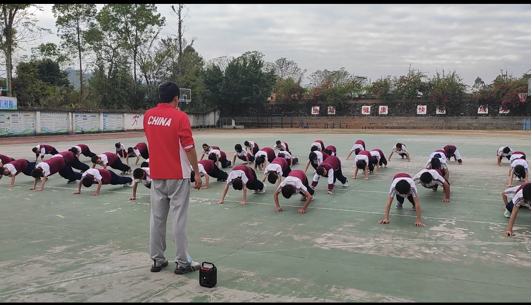 在广宁县,像戴俭安这样的“兵教师”已有13位,还有30位退役军人担任着学校的国防教育教练员。美术老师张成辉在课上临摹革命题材画作,画笔起落间,《狼牙山五壮士》的故事呈现在孩子们眼前;体育老师钱敏祥把耐力训练改编成“车轮跑”游戏,在欢笑中磨炼孩子们的意志。