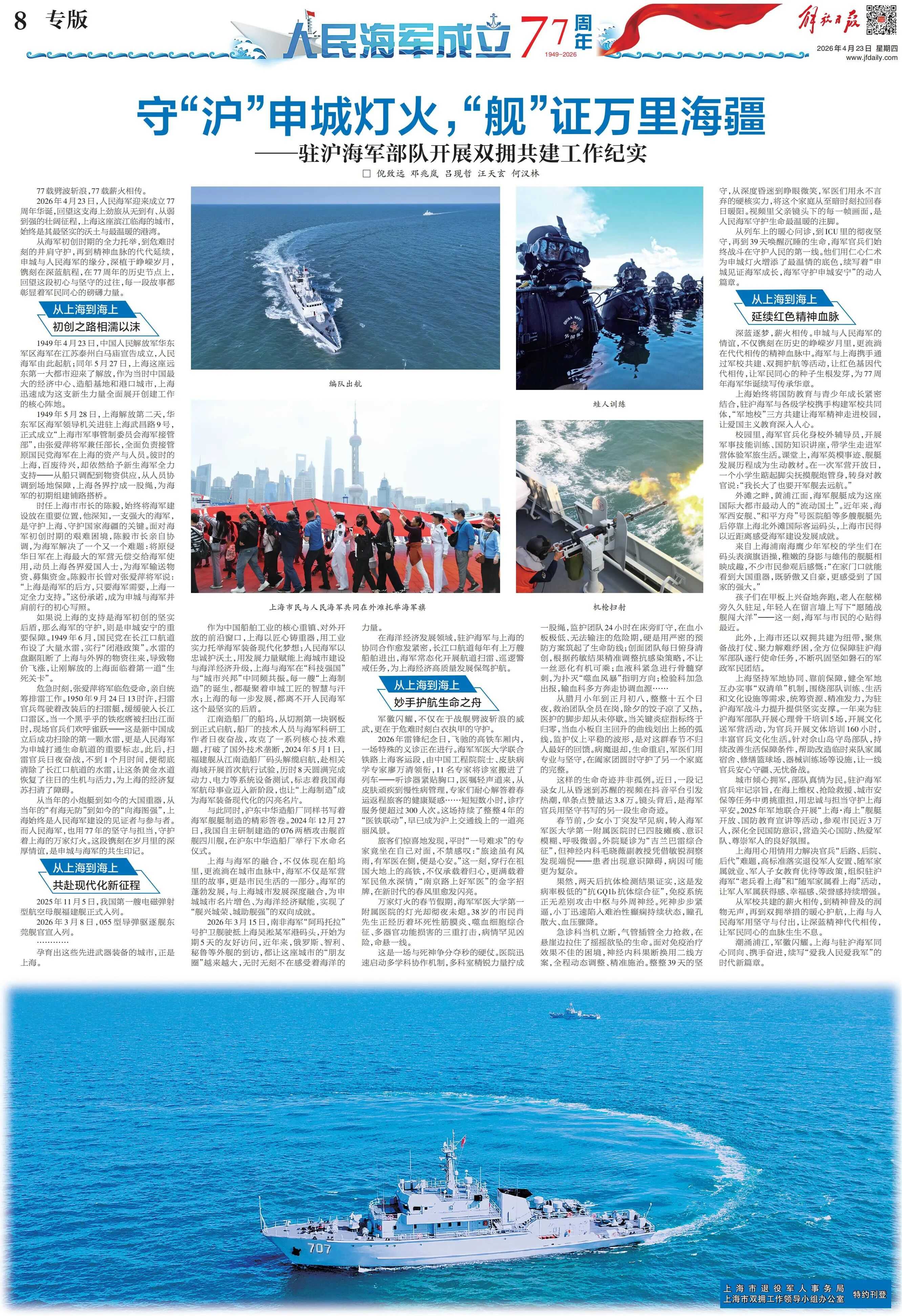 解放日报:守“沪”申城灯火,“舰”证万里海疆——驻沪海军部队开展双拥共建工作纪实